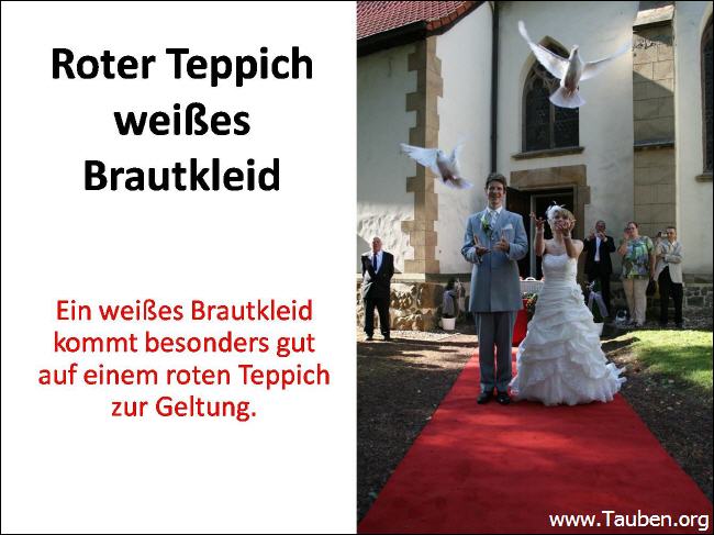 An einem 7 Meter langen roten Teppich finden auf jeder Seite ca. 20 Personen Platz (insgesamt 40 Personen) die dann idealerweise eine langstielige Rose oder einen Herzluftballon in den Händen halten. Bei größeren Hochzeiten mit mehr als 40 Personen empfehlen wir entsprechend längere Teppiche. Die Gegebenheiten vor Ort müssen diese Längen natürlich zulassen. |