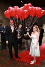Passend zum roten Teppich empfehlen wir den Start von roten Heliumherzluftballons. Hängen Sie doch einfach die Wünsche für das Brautpaar an die roten Heliumherzluftballons und übergeben diese an das Brautpaar. Damit die Wünsche in Erfüllung gehen läßt das Brautpaar (Foto: 25 Stück Heliumherzluftballons) in den Himmel steigen.