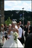 Gerade Kinder brauchen nach einer langen Trauung etwas Abwechslung. Seifenblasen bringen hier Spannung und Freude für die Kinder und das Brautpaar. |