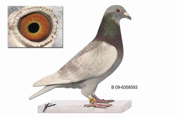 Der Vogel B-09-6358592 v Licht ist noch ein Original Vogel der Gebrüder Janssen der direkt bei Louis Janssen in Arendonk erworben worden ist. Er stammt aus der Linie der roten Vossen. Diese rote Vossen Linie geht auf den Oude Vos v. 1973 und auf das weltberühmte Wondervoske von 1945 zurück.