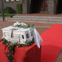 Eine schöne, romantische Hochzeit mit Musik, rotem Teppich, langstieligen roten Rosen, Luftballons, Hochzeitsauto oder Hochzeitskutsche muss nicht teuer sein. Wir liefern Luftballons befüllt mit Heliumgas, Bändern und Anhängern fix und fertig zu Ihrer Veranstaltung. Wir sind der richtige Ansprechpartner für Fahrzeuge, Foto- und Videografen und für Dekorationen rund um Ihre Hochzeit. Nutzen Sie unsere langjährige Erfahrung im Bereich Heirat, Trauung und Hochzeit in der Stadt Duisburg.